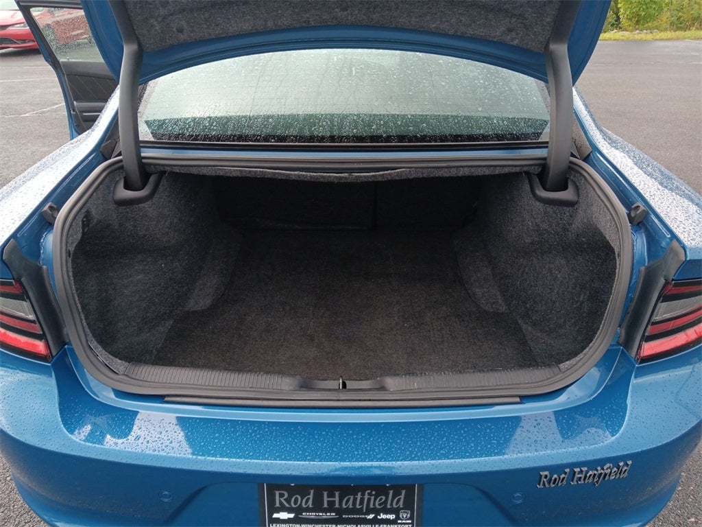 - The 2023 Dodge Charger SXT in Frostbite is a striking full-size sedan with a bold, icy-blue exterior that commands attention. Powered by a robust 3.6L V6 24V VVT engine, it delivers smooth, confident performance paired with a slick 8-speed automatic transmission and rear-wheel drive for a dynamic ride. The SXT trim blends style and comfort with a spacious cabin, featuring a 7-inch touchscreen with Apple CarPlay and Android Auto, premium cloth seats, and modern safety features like rear park assist. With its muscular design and exhilarating drive, its a perfect mix of power and everyday practicality!