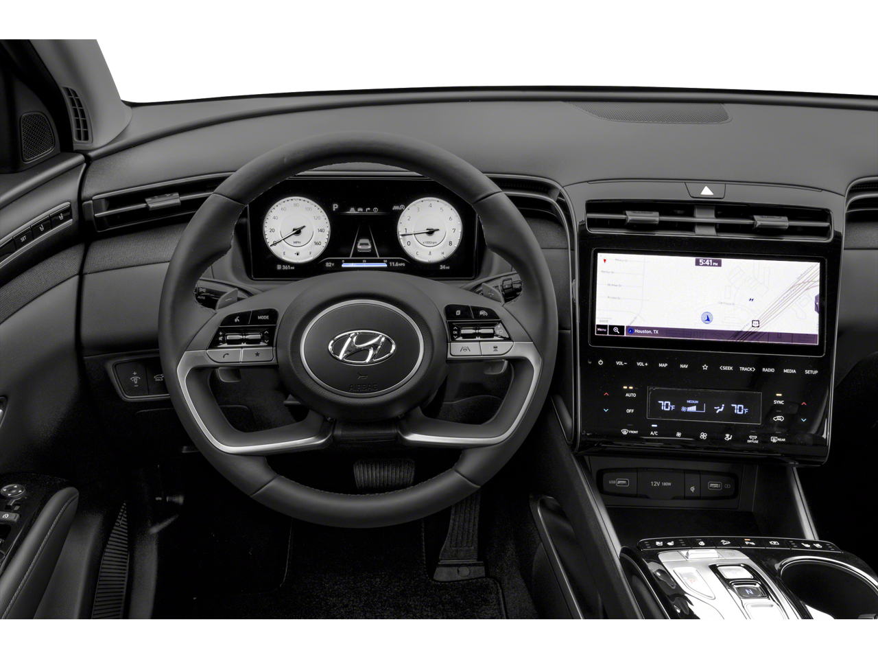 The interior of the Tucson Limited is a true sanctuary, with premium leather seating, dual-zone automatic climate control, and a Bose premium audio system that will immerse you in your favorite music. The spacious and versatile cabin provides ample room for passengers and cargo, making it the perfect companion for your daily commute or weekend adventures.